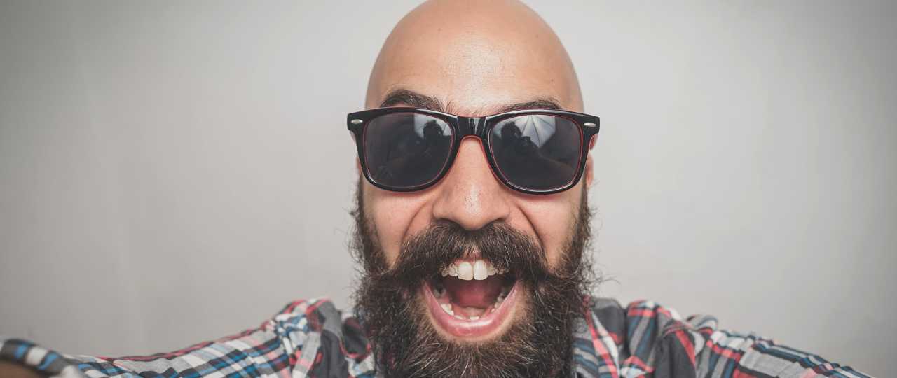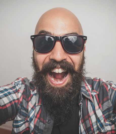Dein Kopf mag kahl sein, aber du gleicht es mit den Haaren im Gesicht aus.