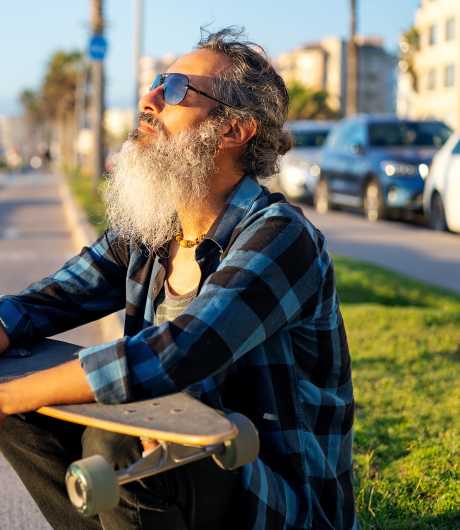 Der Hobo-Look zeichnet sich durch ungepflegte Haare und Gesichtsbehaarung aus, oft mit längeren Haaren oben und kürzeren Haaren an den Seiten. Er ist eine stylische Variante des traditionellen Obdachlosen-Looks und kann von jedem getragen werden.